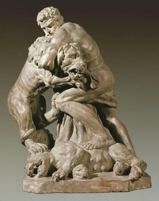 As they were disputing, they passed a statue carved in stone, which displayed “a Lion strangled by a Man”.