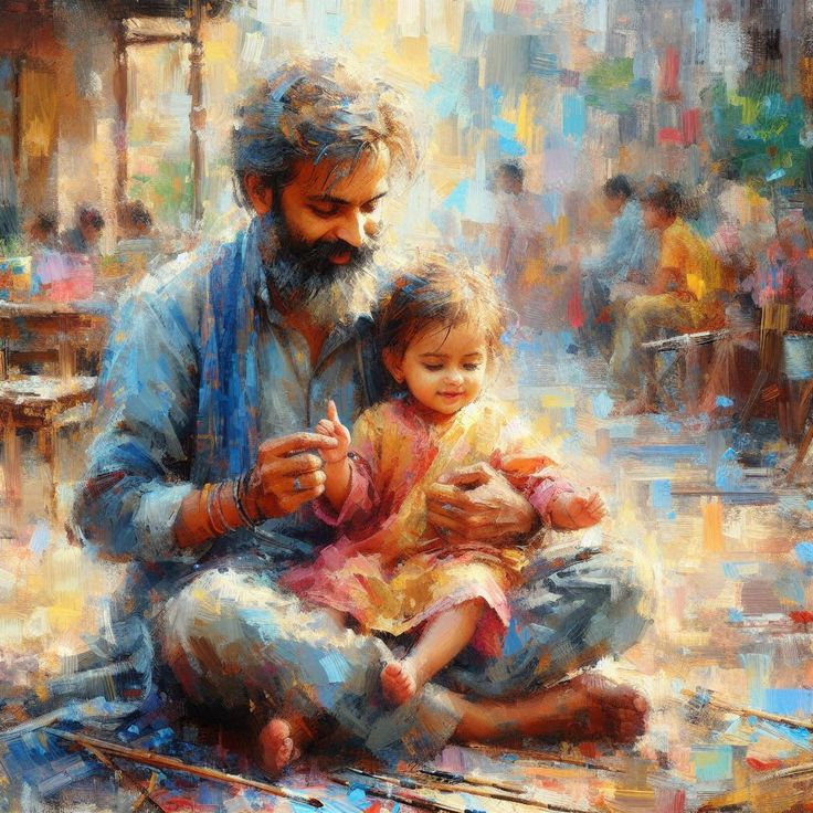 The Seeker went and immersed himself in the river water. But when he raised his head he saw that his body had changed and so had his surroundings. He saw that he is in the lap of a cobbler and everyone is congratulating the cobbler on the birth of his child. And the child is him!