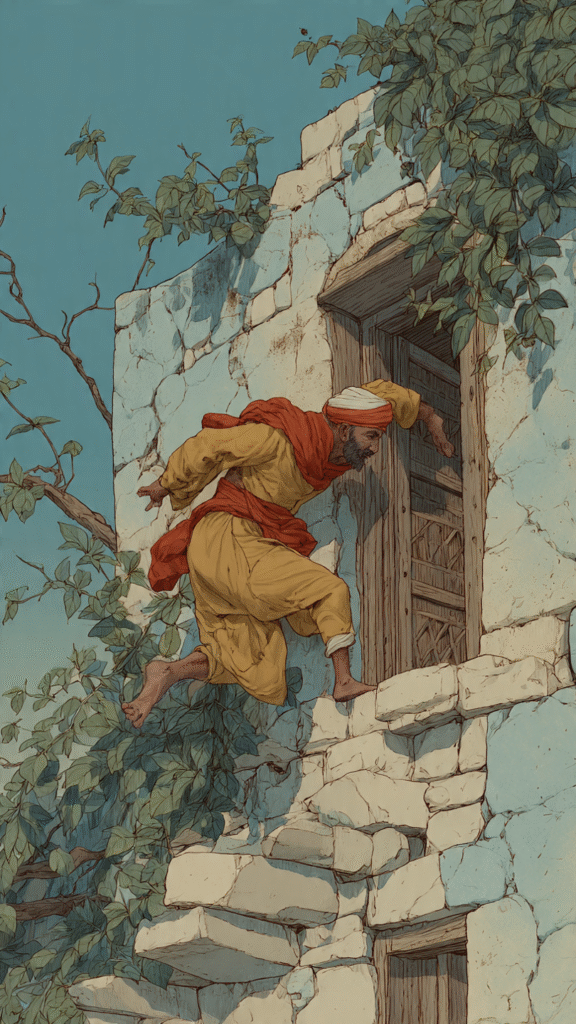 One night a thief, trying to climb through the window of a house which he intended to rob, fell because the window-frame broke, hit the ground and broke his leg.